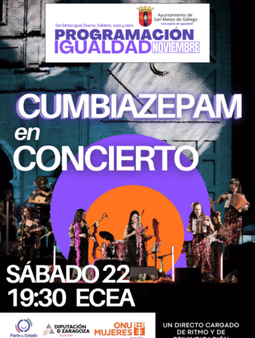 Concierto gratuito de Cumbiazepan en San Mateo de Gállego, dentro de la programación de igualdad de Noviembre. ¡¡No te lopierdas!!...