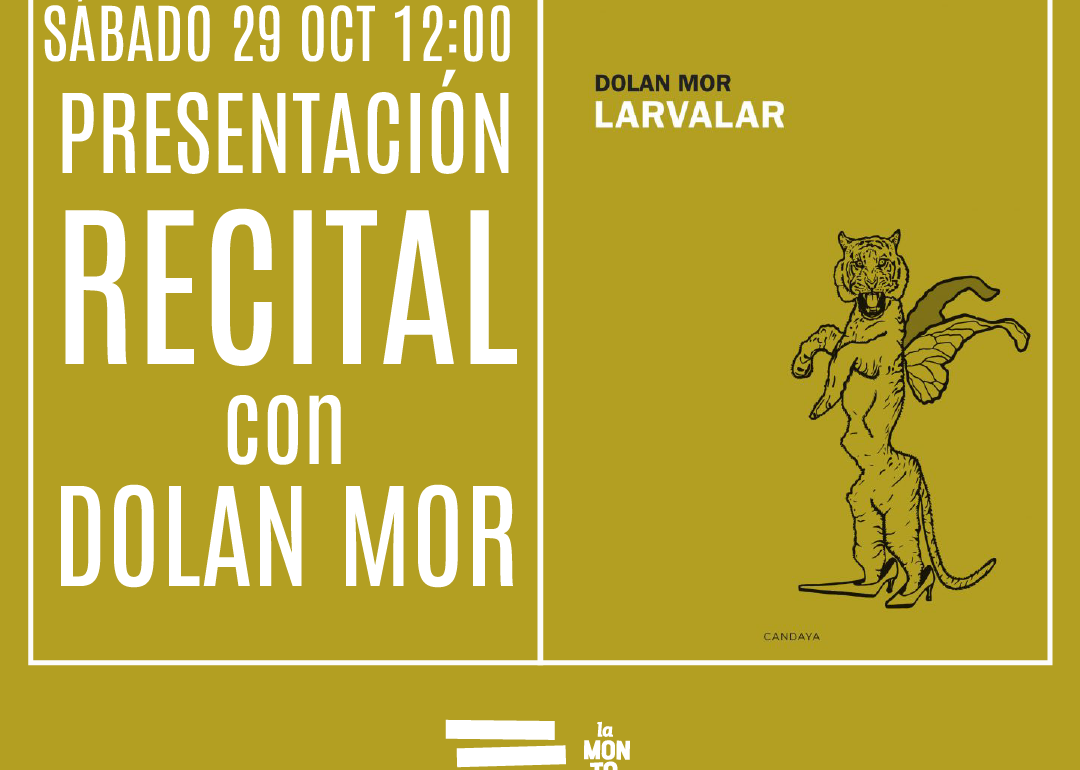 El sábado 29 de octubre tenemos la suerte de acoger en la librería La Montonera el recital-presentación del libro «Larvalar» de la mano de su autor, Dolan Mor, con quien próximamente iniciaremos un taller de escritura permanente.