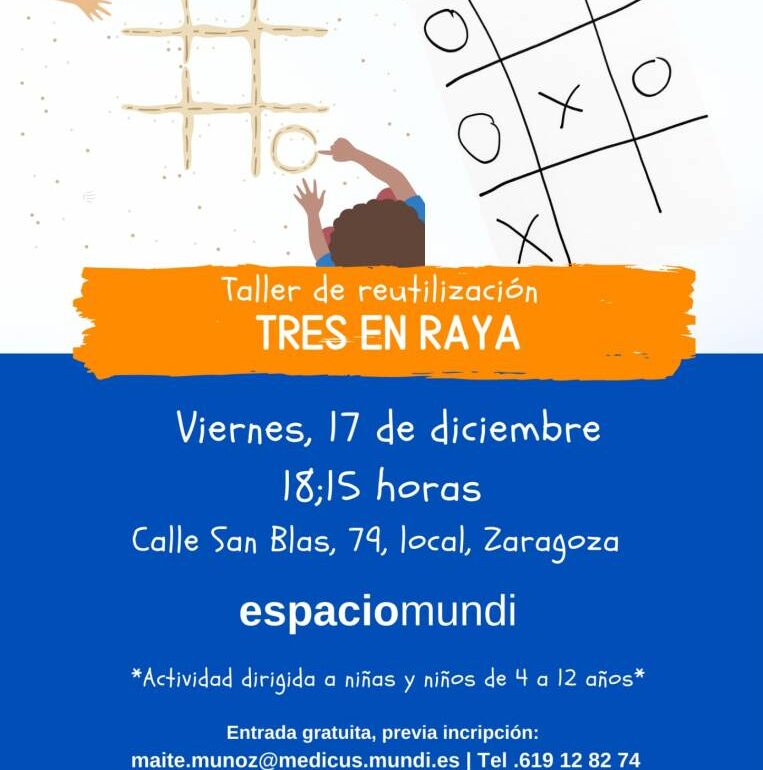 El viernes día 17 de diciembre, a las 18,15h, Taller para hacer un Tres en Línea. Taller de reutilización de materiales.